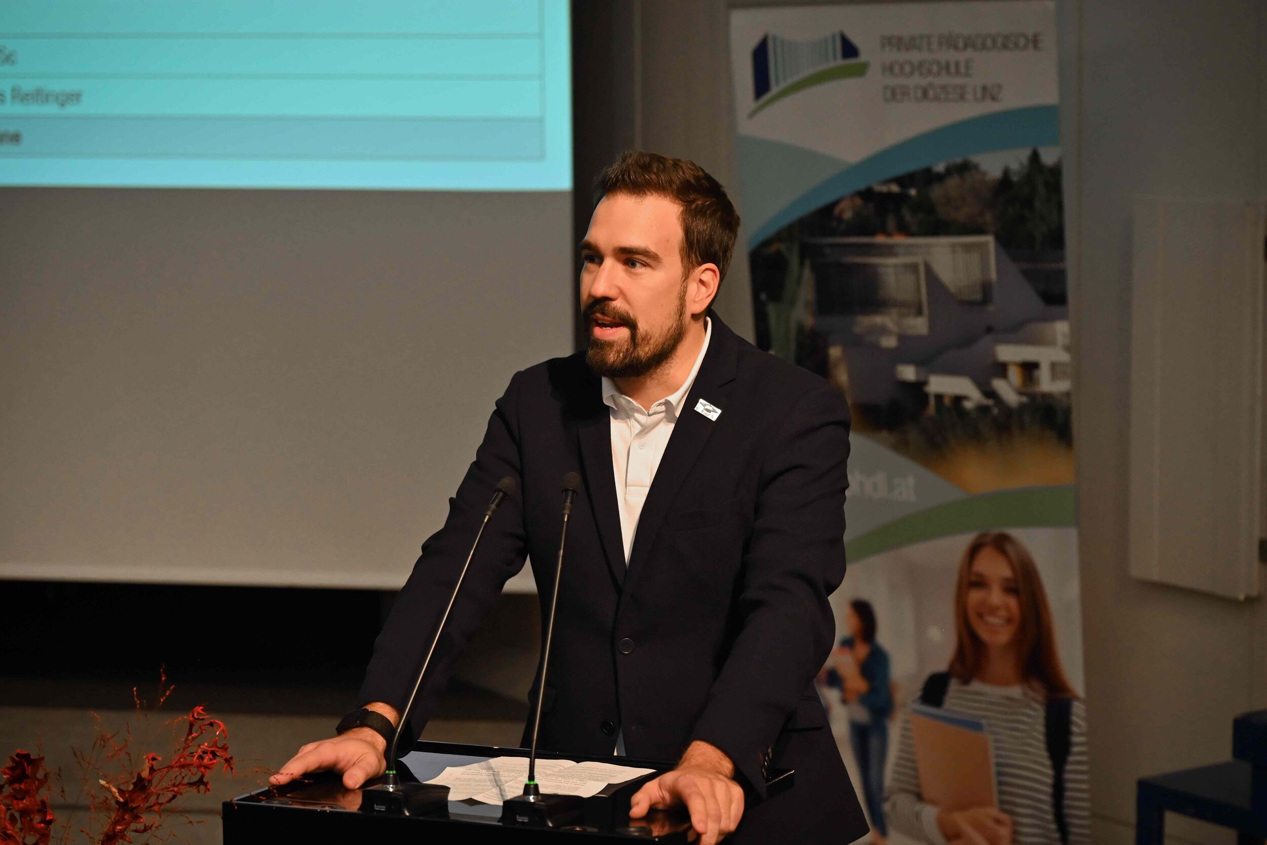 Vor 450 Gästen bei der Akademischen Feier vom 21. November 2024 betonte HS-Prof. PD Dr. Johannes Reitinger (PHDL-Rektor) in seiner Eröffnungsrede die Bedeutung der Demokratie in der Bildung.