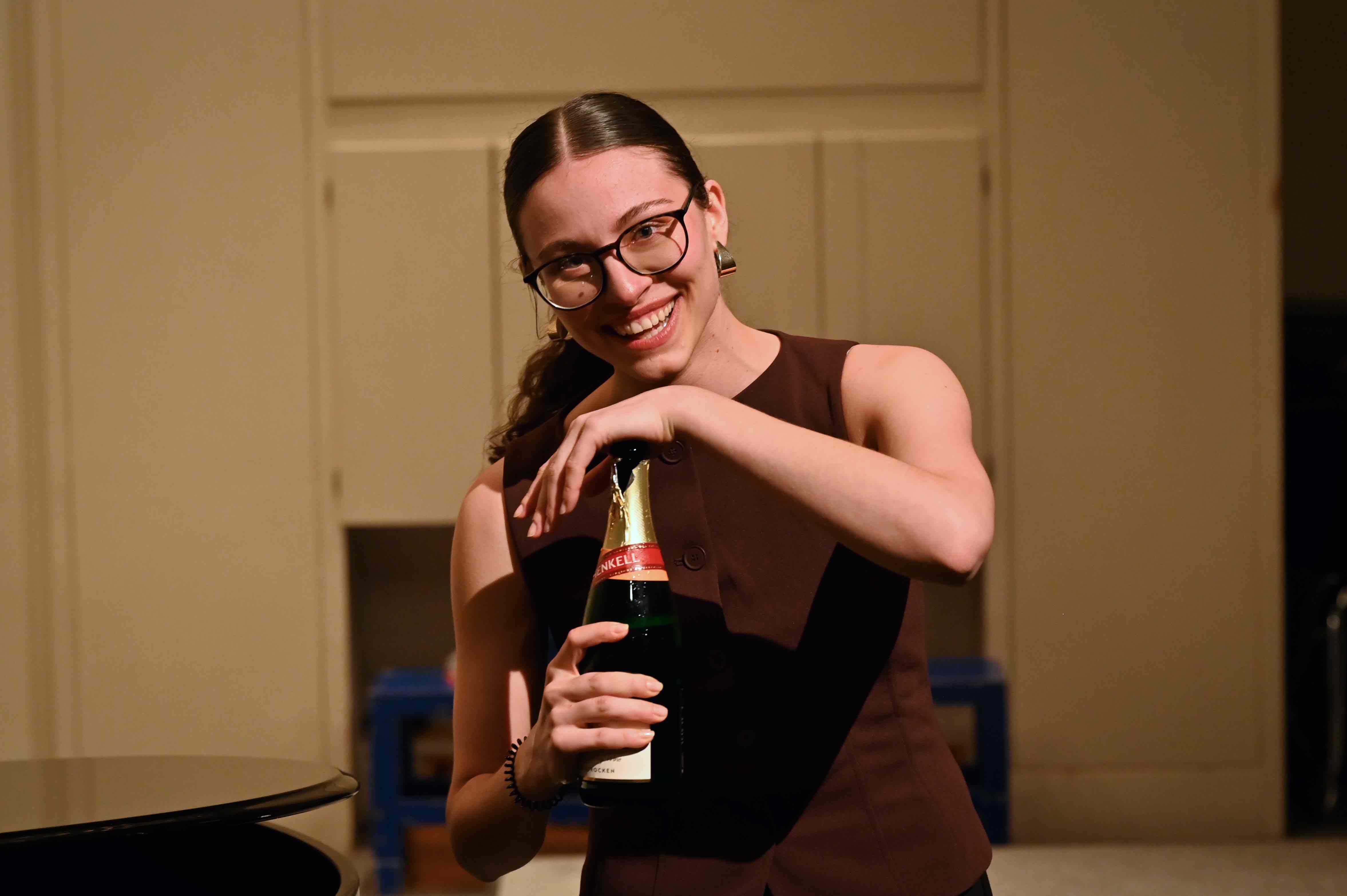 Für den “Lacher des Abends” sorgte Hanna Weichselbaumer: das Operettenstück „Ich lade gern mir Gäste ein“ setzte die Studentin gekonnt mit sehr viel Witz um und erntete mit einem unerwarteten Sekt-Moment am Schluss herzlichen Applaus.