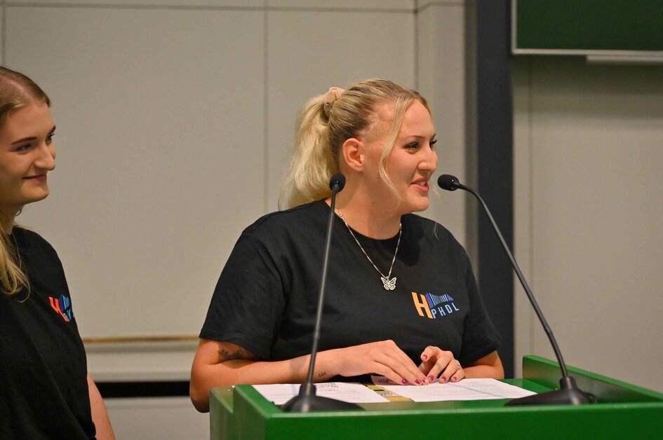 PHDL-Vizerektorin Mag. Johanna Fischer eröffnete den Orientierungs-Nachmittag und wünschte den angehenden Pädagog:innen der Primar- und Elementarstufe Offenheit und Mut, Neues aktiv mitzugestalten. HS-Prof. Dr. Beatrix Hauer (Institutsleiterin Ausbildung) wies darauf hin, dass die zukünftigen Pädagog:innen im Hier und Jetzt mit Menschen arbeiten und zugleich für die Zukunft bilden werden. "Um den kommenden Herausforderungen gewachsen zu sein, braucht es Wissen, Haltung und Menschlichkeit“, weiß Dr. Hauer.