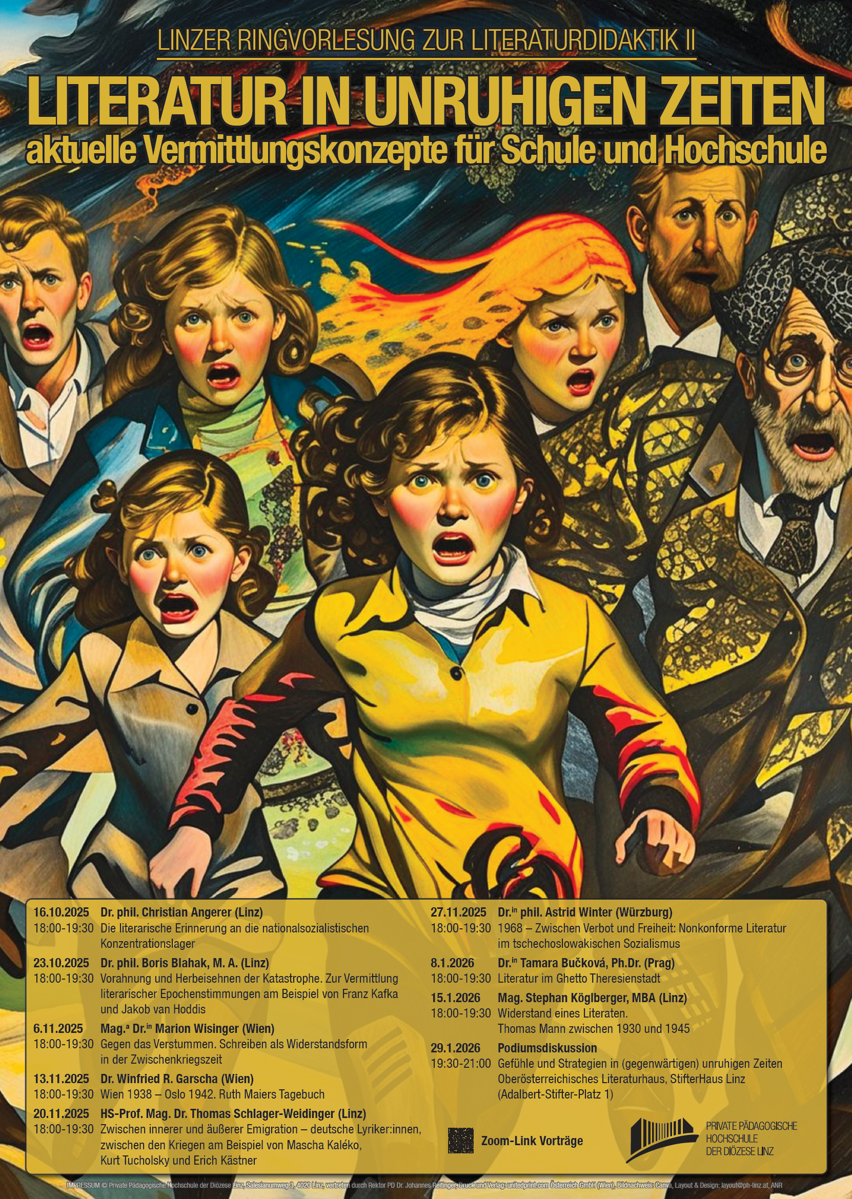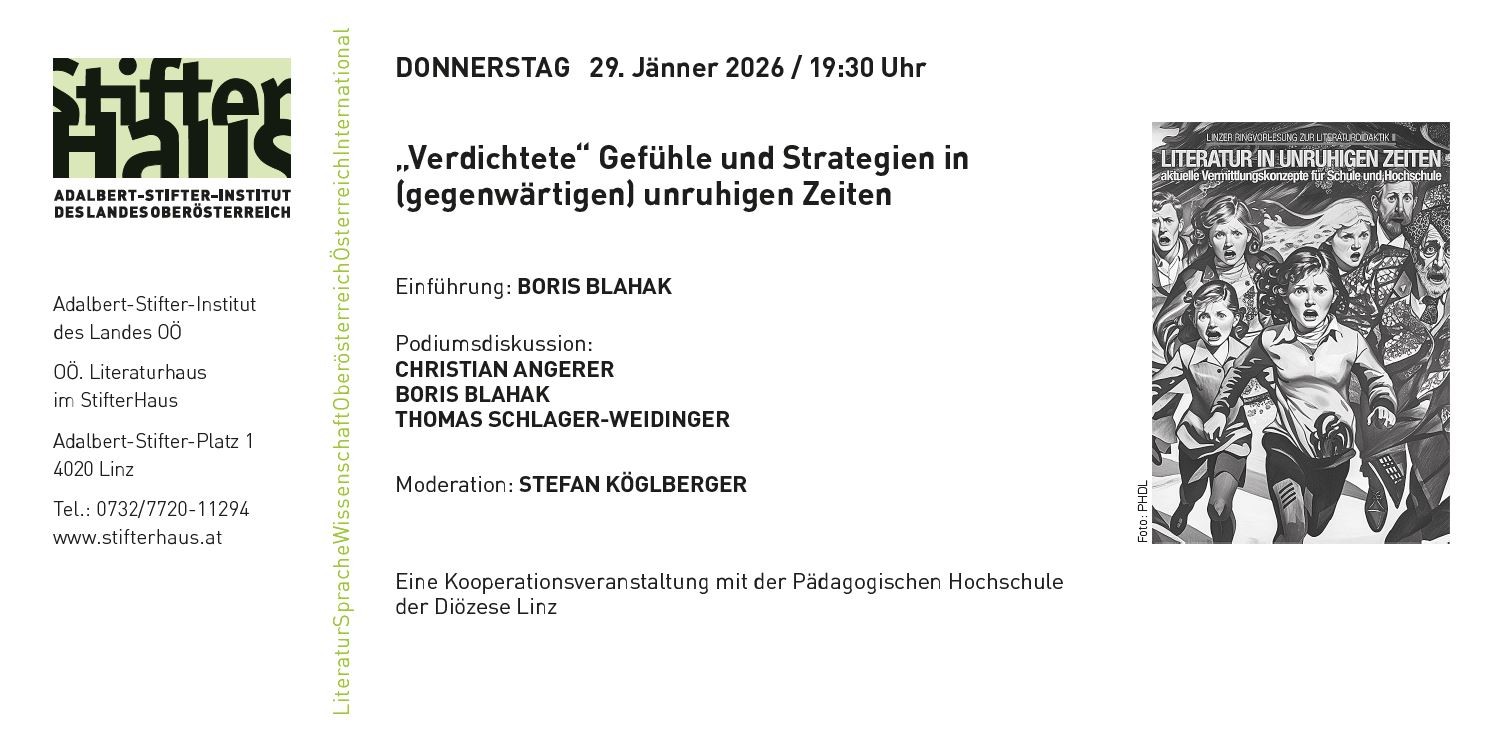 Die Podiumsdiskussion bildet den Abschluss der Ringvorlesung “Literatur in unruhigen Zeiten”, die im Wintersemester 2025/26 an der PHDL abgehalten wird.