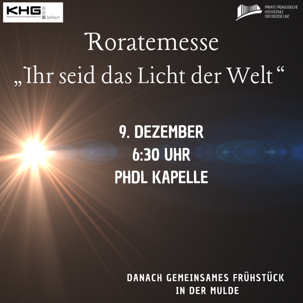 Herzliche Einladung für Frühaufsteher:innen und die, die es gern werden würden: Zur besinnlichen Rorate in unserer Kapelle am Dienstag, 9. Dezember um 6:30 Uhr mit anschließendem gemeinsamen Frühstück!